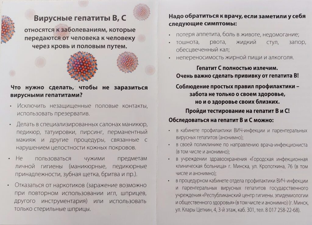 Что нужно сделать, чтобы не заразиться вирусным гепатитом (по материалам ОЦГЭиОЗ)
